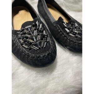Nature Beaded Black Suede Slip-On Loafers With Leather Trim & Cushioned Insole 7