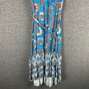 Nature by Westbound Blue Floral Tiered Maxi Dress L Boho Cottagecore Puff Sleeve Beachy