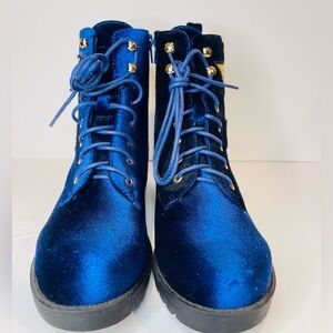 Nature Breeze Women's Velvet Lace up Combat Bootie