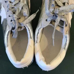Nature Breeze silver metallic lace up sneakers with star design in side. Size 8.