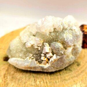 This figure has a design of a cute hedgehog, it is hand carved with nature crystal cluster. You could see the appearance of both nature raw cluster and sparking cluster. The top of the body is covered with crystals, it has uneven texture, freeform shape with some brown mineral.