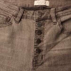 Nature Denim Buttonfly Jeans Size 29/8 High Rise Skinny Leg Grey Color