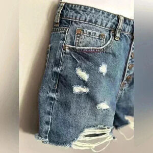 * Nature Denim distressed button fly denim shorts