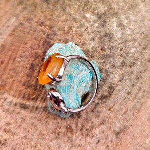 This is an open ring design, the other size has a beautiful oval shape golden healer stone. It has transparent orange color with a flakey pattern inside. Nature golden healer not only beautiful it also carries nature energy and healing properties.