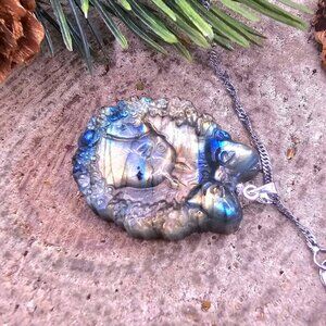 Nature Labradorite Flashy Totoro Portrait Pendant Necklace. Price includes both pendant and chain.