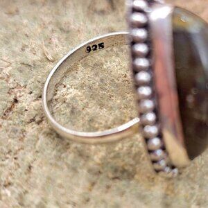 Nature Labradorite Triangular Shape 925 Ring ( Size 8)