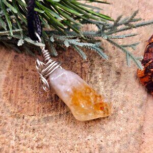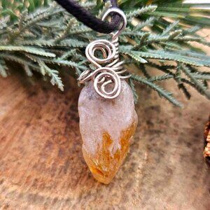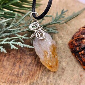 Nature Yellow Citrine Tooth Wire Wrapped Pendant Necklace. Price include both pendant and necklace.