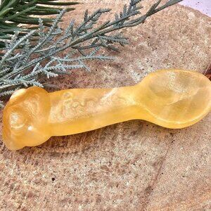 Nature Yellow Quartz Hand Carved Panda 3.2" Spoon.