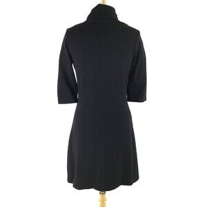 Nature vs Future Ponte Knit Dress Womens sz Medium Black Stretch Asymmetrical Shawl Neck US Made Artsy Office Minimalist