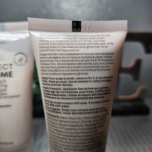 Set of Naturelab Tokyo Perfect Volume hair masques. Ideal for nourishing and volumizing hair. Comes in sleek white packaging.