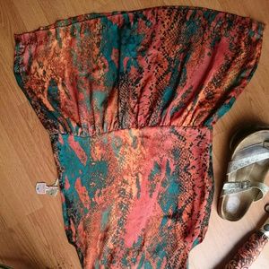From Macy's Kensie collection. Colorful snake-like patterned, very soft, light, and breathable fabric. Side zipper! Works perfectly. Keep summer around or welcome the fall! Model is 5'5" and 110.