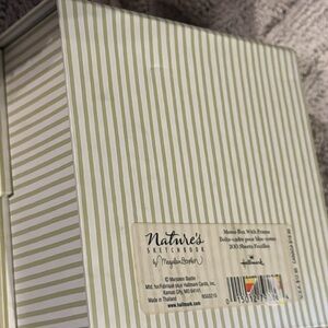 Nature’s Sketchbook by Marjolein Bastin sage green /cream keepsake and note box - small dent on back - see picture- notepaper still wrapped in cellophane- folding top makes accessing notes easy! Very Pretty!!”Memo Box w/ frame.