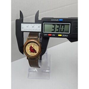 Natures Time Birdwatch Cardinal Wood Look Bezel Brown Leather Quartz New Battery