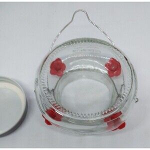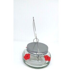 The Nature's Way Bird Products Mason Jar Hummingbird Dish Feeder is a small, clear feeder made of glass, plastic, and metal. With a capacity of 8 oz and 4 stations, it is suitable for hummingbirds and can be easily cleaned and refilled.