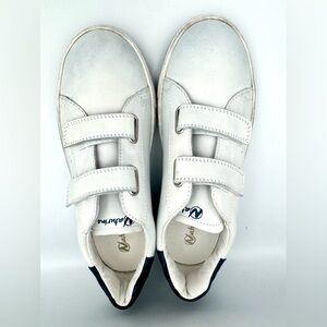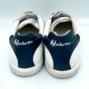 Naturino Sz 34 Hasselt 2 White and Blue Velcro Leather Sneaker NEVER WORN