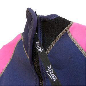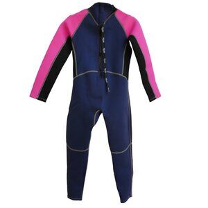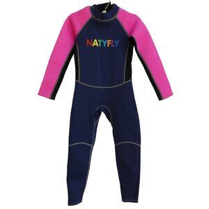 Natyfly Kids Wetsuit 2mm Neoprene Thermal Swimsuit. Strengthened YKK Zipper Center Back with Extra Long Leash for Easy Reach. UPF 50+ Sun Protection. Flatlock Stitching to Reduce Seam Irritation to Ensure Max Comfort and Durability. Navy Blue & Neon Pink. Full Water Sports. Hand Wash Neoprene Nylon Blend. Tagged Size Girls L.