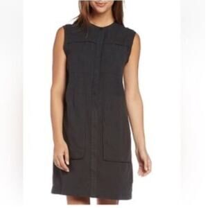 Nau Black Flaxible Sleeveless Linen Blend Shift Dress