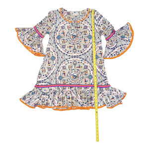 Naudic Dress Sz S Small Orange Trim Boho Resort Flow Wide Flare Dress