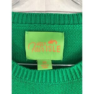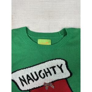 "Naughty" Fair Isle Ugly Christmas Sweater Womens XS Green Stocking Stretch