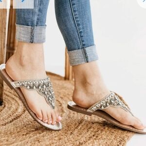 Naughty Monkey Bejeweled Sandal Flip Flop Leather Black 37 Beaded Gem Jeweled