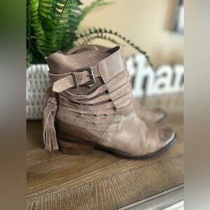 Naughty Monkey 2" block heel boho, trendy, leather, warm neutral color, comfortable, classic, capsule wardrobe, closet staple, essential, basic, versatile, timeless, chic, summer, vacation, resort, travel, Coachella, western, southwestern, pull on Leather upper In great condition.