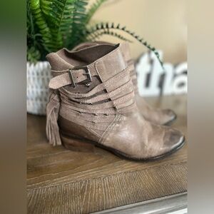 Naughty Monkey Boho Studded Suede Fringe Block Heel Zip Ankle Western Boots 6
