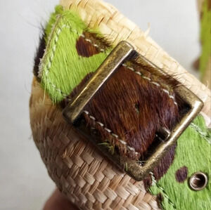 Add a sassy little punch to your style with the Out Of Line 3 pump from Naughty Monkey. This kicky pump has a woven raffia upper with an exotic print hair-calf buckled harness detail, a perfect little round toe, and a sexy stacked stiletto heel. It also features soft fabric linings, a fully cushioned insole, and a lightly textured dress outsole. The Out Of Line pairs perfect with dark denim cropped jeans! Pre-Owned See Pictures For exact Shoes! In Excellent Condition!