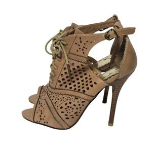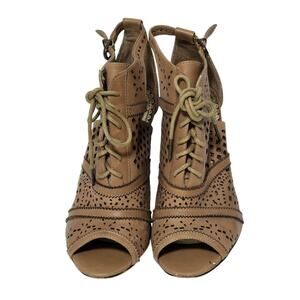 Naughty Monkey Heaven On Earth Tan Lace Lasercut Peep Toe Heels 8