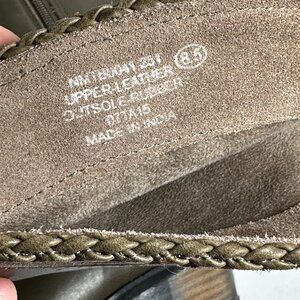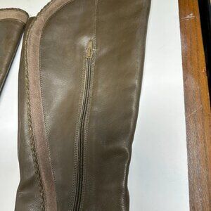 Naughty Monkey Knee High Riding Boot in Olive green upper leather with camel suede trim side zipper size 8.5.