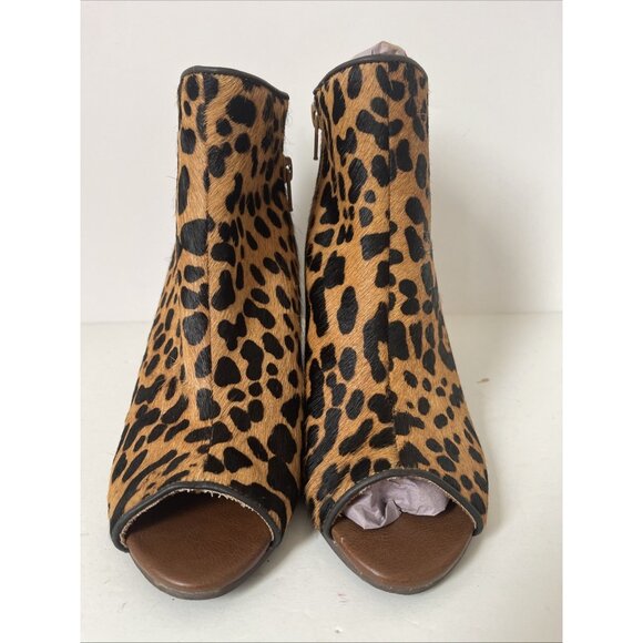 Naughty Monkey ‘Kuda’ Leopard Cow Hair Peep Toe Wedge Booties Women’s 3” Heel Size [Add Size] NEW