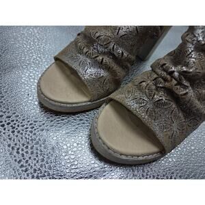 Naughty Monkey Nyxx Metallic Perforated Leather 6 Slingback Sandal Block Heels