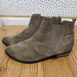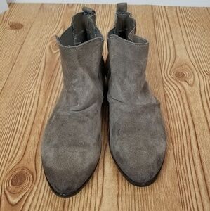 Naughty Monkey taupe slouchy suede pull-on ankle booties. Stretchy elastic on both sides of the ankles. Size 7.5