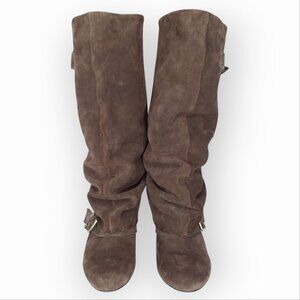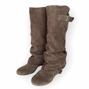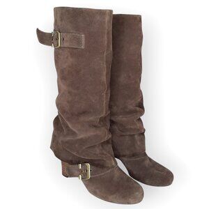 Naughty Monkey Suede Boots Size 8 Brown Slouchy Mid Calf Buckles Pull On Pirate