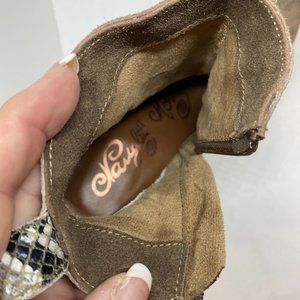 Naughty Monkey Sz 8.5 Woman's bootie Snake like Leather Side Zip Fashion boots