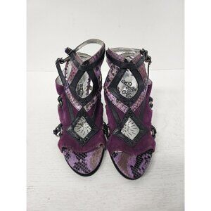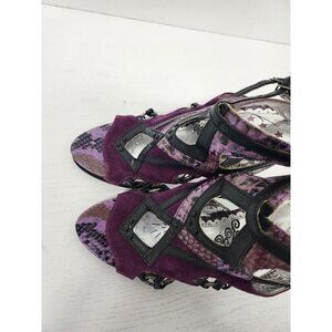 Naughty Monkey Women Lea Heels 7.5 Purple Black Snake Skin Suede Strappy Sandals