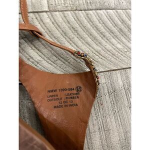 The Naughty Monkey women's thong sandals in size 9.5 feature a multicolor beaded design. Made with a leather upper, insole, and lining, these sandals offer a durable and casual style perfect for summer. The flat heel and slip-on closure provide comfort and ease of wear. Crafted in India, they have a rubber outsole for added durability. Condition is good, minor details as shown in picture