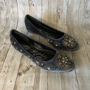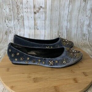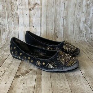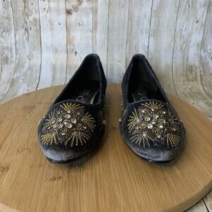 Naughty Monkey Women's Embellished Beaded Velvet Gray Flats w/ Gems Size 8