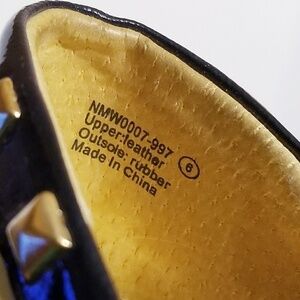 Beautiful studded open toe heels by Naughty Monkey, size 6. Heels measure at about 3.5". Upper leather. Excellent pre-owned condition; some wear on soles. Please see close-up pictures for more details. Original box is not included.