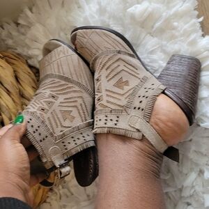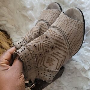 Naughty monkey peep toe cutout booties block heel boho size 9.5