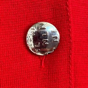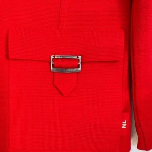 Red Naulover Collection red jacket. 2 pockets with buckle on flap, 3 button closure, made from acrylic/wool. Size 44