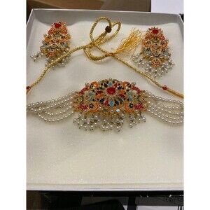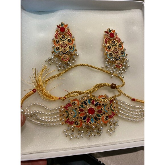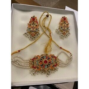 Nauratan Choker Jewelry Set Semi Precious stone Indian Pakistani Bridalwear NWT