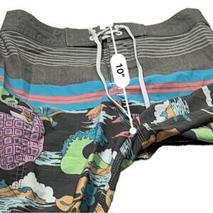 Nauset Surf Gray Multicolor Tropical Floral Palm Tree Print Swim Trunks Sz 27