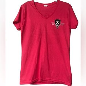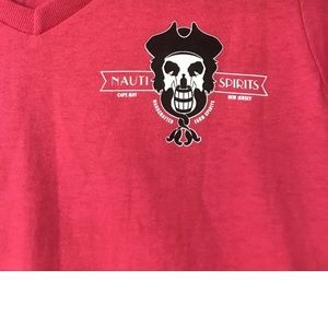 Nauti Spirits Cape May NJ Pink V-Neck T Shirt skull black mermaid