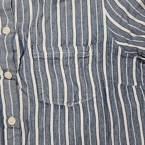 Nautial Style Blue and White Striped Classic Fit Womens Medium Button Down Banan