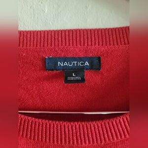 Nautica 100% Cotton Red Nautical Sweater, Size Large.