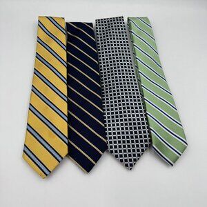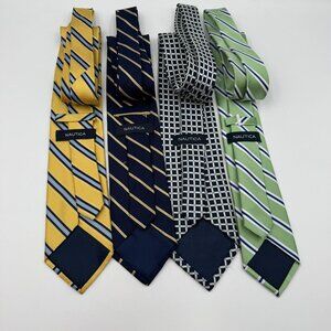 Nautica 100% Silk Four-Tie Bundle In Yellow Navy Green & Geometric Pattern