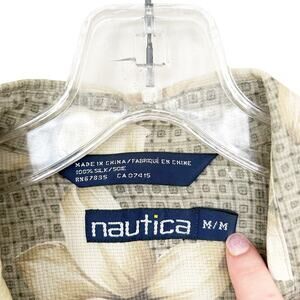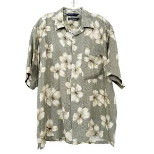 Nautica 100% Silk Hawaiian Floral Short Sleeve Button Down Sz M