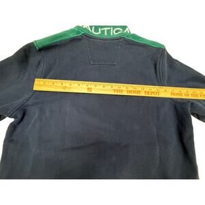 "Nautica" 1/4 Mens Sweatshirt Navy /Green Pockets L Chest Logo SZ M Colorblock