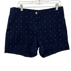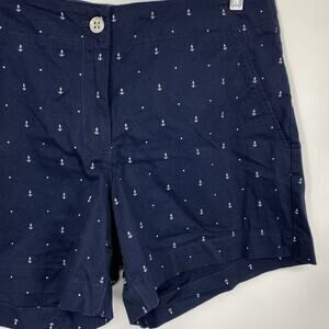 Nautica Anchor print Chino Shorts Women size 12 Navy Blue Cotton Nautical Preppy