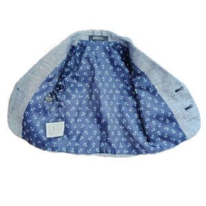 Nautica Baby Blue Double Button Suit Coat Blazer & Blue & Pink Tie Infant Sz Newborn 0-3 Months with silky lining. Tie is clip-on. Perfect for a photography studio for photo shoots, props and outfits. Preppy and classy style.